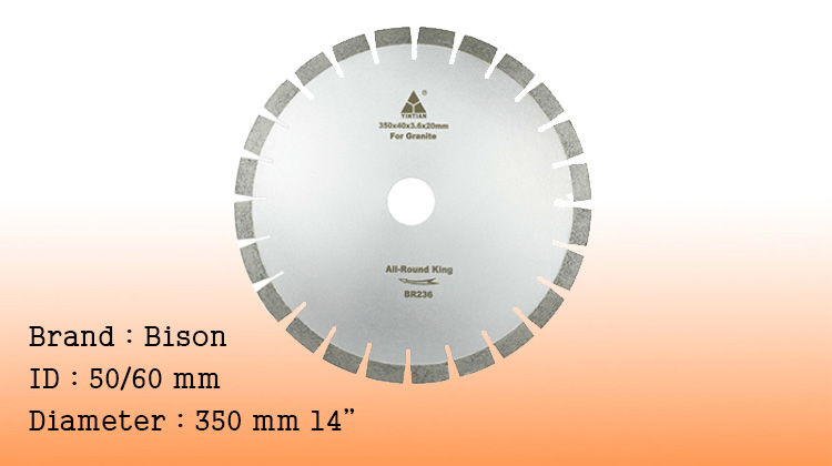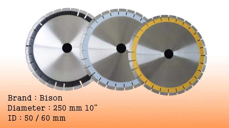 BISON Diamond circular saw blade is one of most familiar slab cutting and grinding tools. Diamond circular saw blade for granite is used for cutting and grinding granite blocks and slabs with different hardness. Silent metal body is available for reducing environment pollution. These blade can be used on portable electric tools, manual cutting machines and automatic bridge cutting machines.